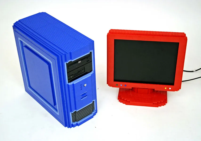 Например Nathan Sawaya собрал себе компьютер. Точнее корпуса для системника и монитора: