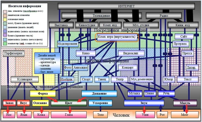Если рассматривать все виды искусств по чувствам, которыми они воспринимаются, и форме, в которой они передаются, то получается очень интересная и цельная схема.