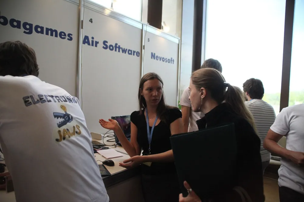 Куча стендов, предлагающие услуги монетизации, хостинга, мобильными платежами