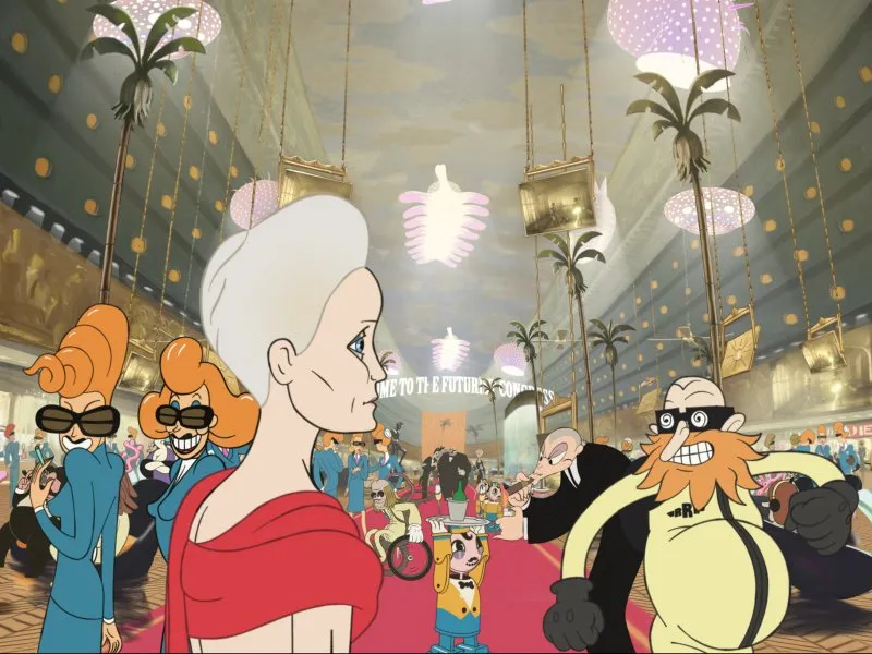 Вторая глава. Следует скачок во времени на двадцать лет. Героиня едет на некий конгресс, не футурологов, нет, а на некий киноконгресс, и тут посреди пустыни нежданно-негаданно начинается фантасмагория галлюциногенного мультипликационного видения, в котором героиня пробудет большую часть истории, и из которого она выныривает на короткое время, чтобы потом снова вернуться в него. Выныривает для встречи со знакомым, который, как она надеялась, поможет найти родного сына.