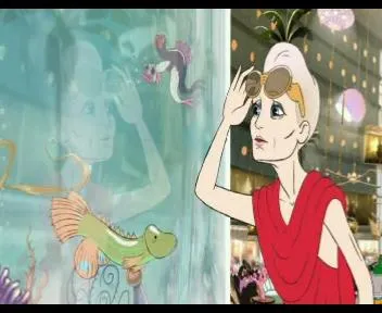 Вот эта часть фильма имеет под собой основу романа Лема, но идея то, что в будущем люди будут принимать галлюциногены и чувствовать, представлять себя тем, кем или чем они хотят быть, переработана в угоду мелодраматичного выбора поиска себя и сына среди красочных фантасмагорий. Есть даже кусочек «Галактических железных дорог» Лейдзи Матсумото. Есть похожие моменты из аниме "Актриса Тысячелетия", где героиня проходит по фильмам или местам, где она сыграла или хотела сыграть.