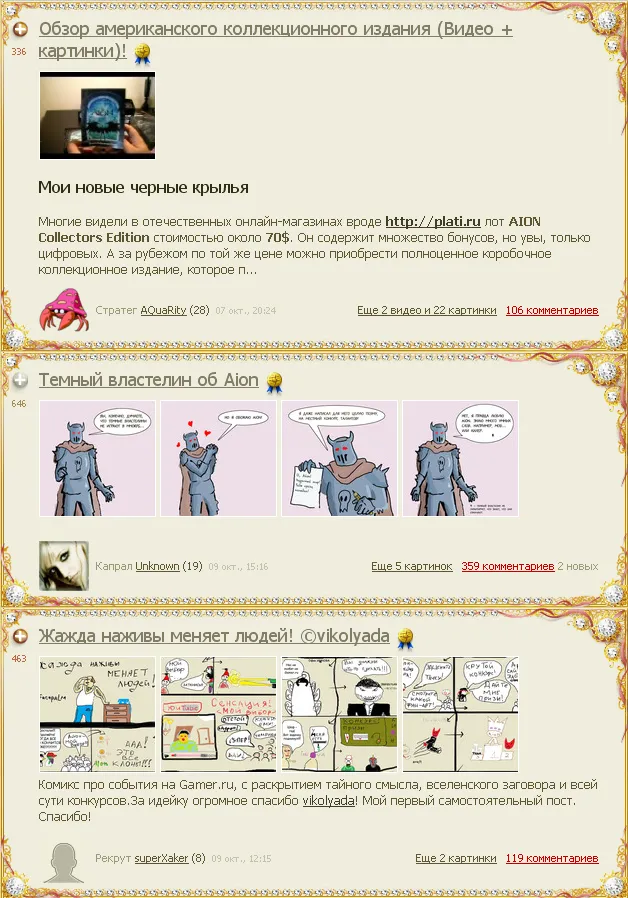 А теперь вспомним конкурс в блоге Aion`a «Бриллианты — лучшему автору». Пост был создан 7 октября. И что мы наблюдали?
