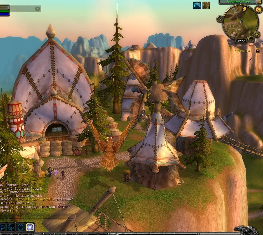 На другой стороне уступа ,наступая одна на другую , громоздились лавки торговцев оружием.Ничего интересного.То ли дело лавка Аски и Наала.Большой котел,в котором мерно булькала аппетитная субстанция,притягивал своим запахом любого прохожего.Интересно,что же там.Суп из оленины и диких грибов?Или уха из луциана с добавление зул'фарракстской грязи?Друид мотнул головой.Не время.Мечтательно улыбнулся и направился к башне.Поднялся по спиралевидной лестнице выше.Тал.И парочка его ветрокрылов.Привычная картина.Давно уже Кибу не пользовался его услугами,с тех пор как Тюрак научил его искусству превращения в орла.