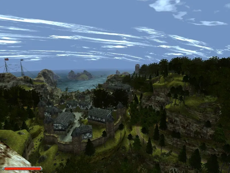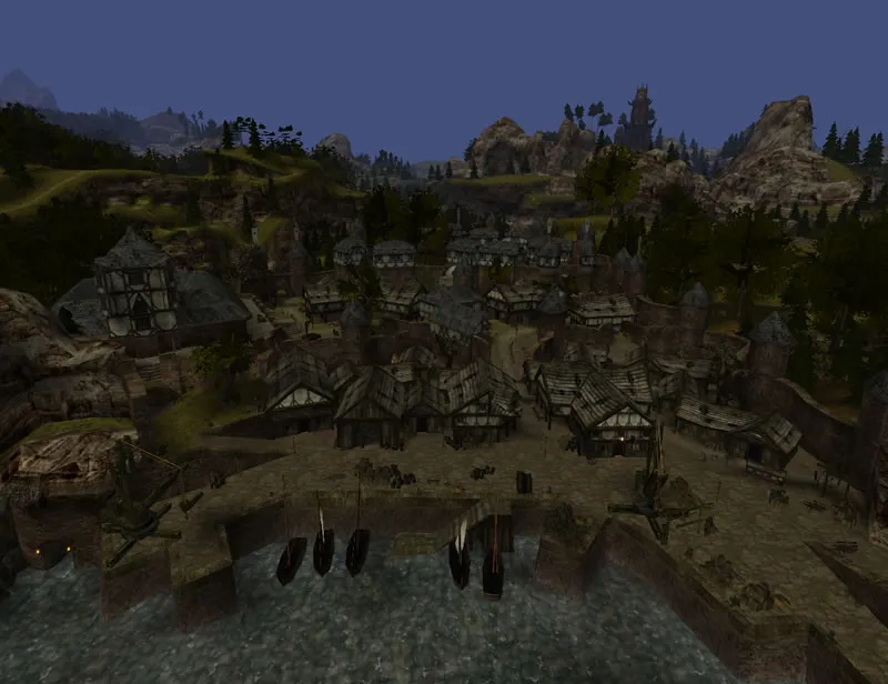 Хоринис – огромный портовой город, который был построен специально для отправки руды на материк Миртану. Расположение города очень удачное – он раскинулся на берегу тихой бухты, которая с двух сторон защищена горами. Со стороны острова город обнесен высокой стеной, которая защищает горожан от диких зверей, разбойников и орков.