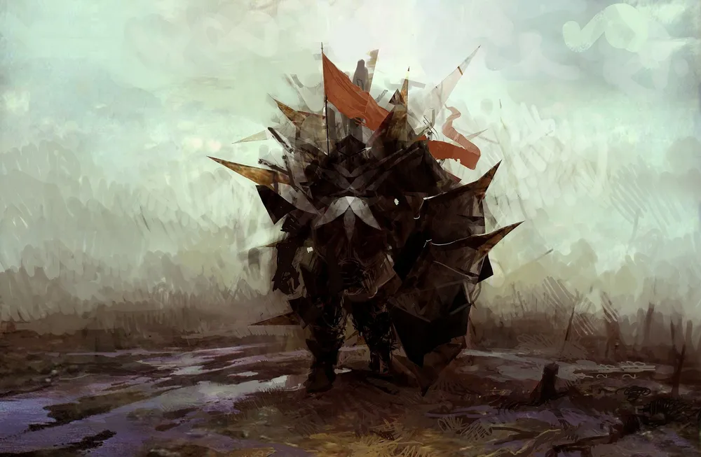 Только вот совсем не была эта мельница сказочной. Вся ощерившаяся наконечниками пик, стрелами и зубастыми наплечниками, несла она с собой только разрушение. Но ведь невозможно нести разрушение без оружия. Потому при ней всегда был огромный клинок с докрасна раскаленным лезвием и причудливой, словно слитой из нескольких мечей гардой, а также не менее огромный щит, представлявший собой нагромождение мелких вперемешку с копейными навершиями. Последний венчался черепом единорога.