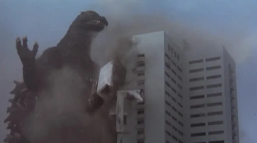Пыль начала рассеиваться, и тут актёр заметил знакомый силуэт огромного ящера. Годзилла был жив.