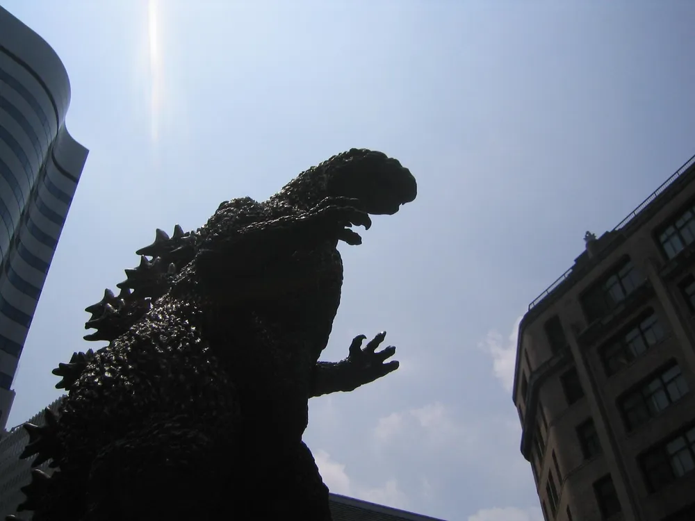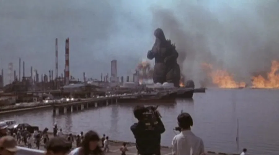 Персонал со съемочной площадки бегом направился на улицу. Актер отцепил голову Годзиллы и неуклюже последовал за ними. То, что предстало перед ними, вызвало шок.