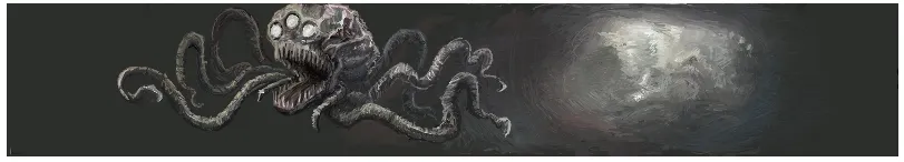 - Переходим к следующей немаловажной части октабрейна – пасти. У октабрейна ровно семьдесят девять зубов, которые меняются раз в два года. Язык у этого существа отсутствует. Это означает, что он совсем не чувствует вкуса и при выборе пищи руководствуется только визуальной аппетитностью жертвы.