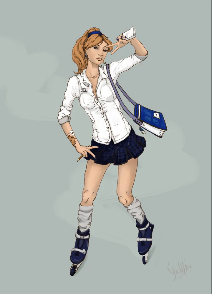 Глядя на эти работы, я не переставал удивляться! Тут вам и секретарь на роликах и технологии будущего, в общем, всего и не перечислить. Серьезно, при создании этих рисунков авторы фантазировали вовсю и смогли создать достаточно оригинальных персонажей.