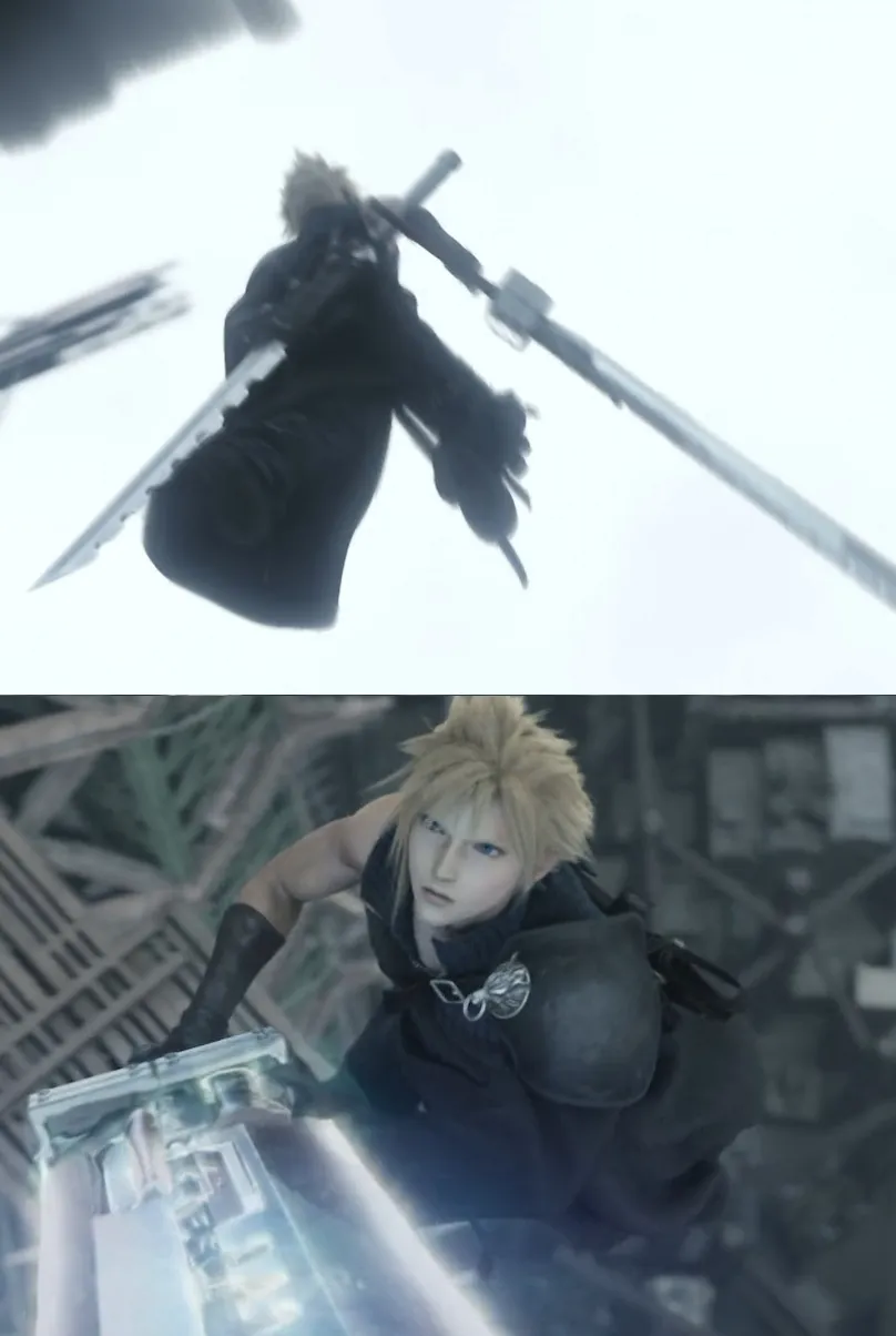 Хотя меч и выглядит толстым и здоровенным как Buster Sword, не похоже чтобы Клауд испытывал трудности с его переноской и использованием одной рукой.