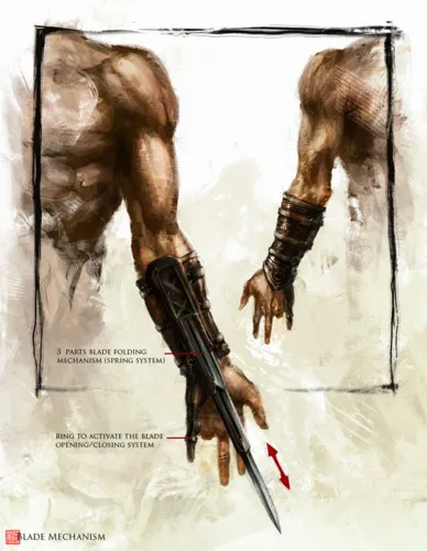 Знаковое оружие Ассасинов - Скрытый клинок, является орудием для незаметных убийств и регулярных боевых действий. Наиболее их универсальное оружие, имеющее несколько обновлений и форм использования.
