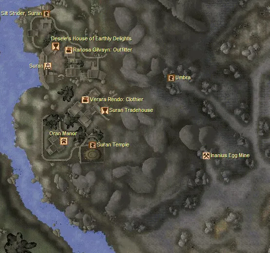 2. Как добраться до Умбры из Сурана? Воспользуйтесь левитацией, чтобы взлететь на холмы восточнее города. При желании и прокачанной Акробатике можете попробовать поиграть в горного козла и запрыгнуть на эти скалы. Достичь Умбры возможно и пешком – выходите через южные ворота Сурана, располагающиеся у поместья Оранов. Сверните налево, как только появится такая возможность, и идите на северо-восток, мимо яичной шахты Инаниус. Когда увидите подъем наверх – знайте, что это ваш поворот.