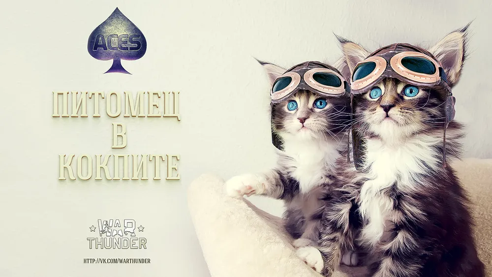 Дорогие Друзья, игроки War Thunder, а в особенности владельцы домашних питомцев. Мы рады сообщить вам о начале нового конкурса творческих работ на авиационную тематику от сообщества The ACES в официальной группе ВКонтакте War Thunder, при участии ваших и не только (бабушкиных, дедушкиных, подруг, друзей, соседей, тоже в счёт) домашних питомцев. Теперь у вас есть замечательная возможность за награду продемонстрировать и показать нам «А что если, Ваши питомцы любили бы нашу игру так же, как Мы с Вами?», и не важно какие они (пушистые, ушастые, грызущие бамбук, плавающие и ползающие, четвероногие, лохматые и не очень (тараканы не в счёт)). Для этого вам надо всего лишь запечатлеть «друга вашего меньшего» за штурвалом на фотографии и тема её должна быть связана с War Thunder и авиацией.