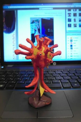 zini4_tha_grunt (Звероглаз Аха) - 1 балл. Выбор был сложен, но явно четким и гарантированным именно для это работы. Большой упор на свой выбор я делал на детализацию персонажа и композиция разноцветного материала, в нашем случае - пластилин.