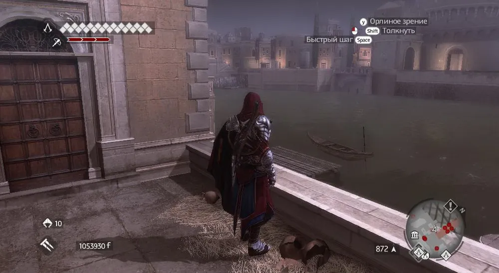 Эцио хочет бросить Яблоко в воду, но не решается и Марио забирает Яблоко себе, предоставив племяшу возможность принять решение позже. Прыжок веры в воду, звучит красивейшая музыка, красуется заставка Assassin’s Creed: Brotherhood и шоу начинается.