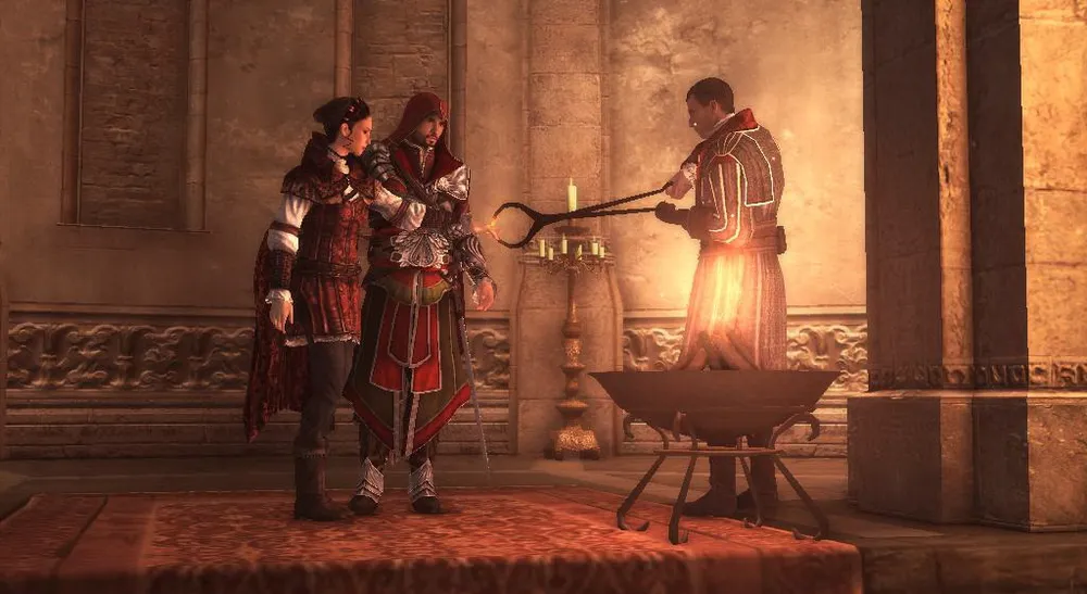 Войска французов и папы в смятении. Эцио поручает Ла-Вольпе собрать ассасинов и привести Клаудию. Наблюдаем церемонию, как Клаудию посвящают в ассасины. Эцио теперь Элеметноре – хранитель Ордена ассасинов.