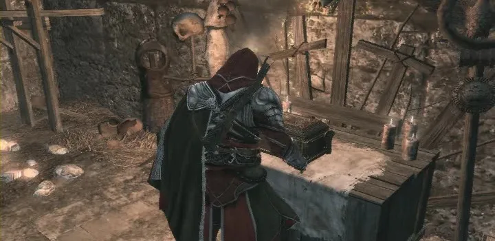 Мистерия уже началась, но Эцио не знает на каком кресте Пьетро. Прежде, чем идти за кулисы, уничтожьте стрелков. Все они отмечены на карте – позовите ассасинов, чтобы оставаться незамеченным, и бегите за кулисы, чтобы встретиться с переодетыми рекрутами. В Римской форме идите к сцене. Включив орлиное зрение, найдите свое место в пьесе – будут подсвечиваться кучки сена. Идите к ним.