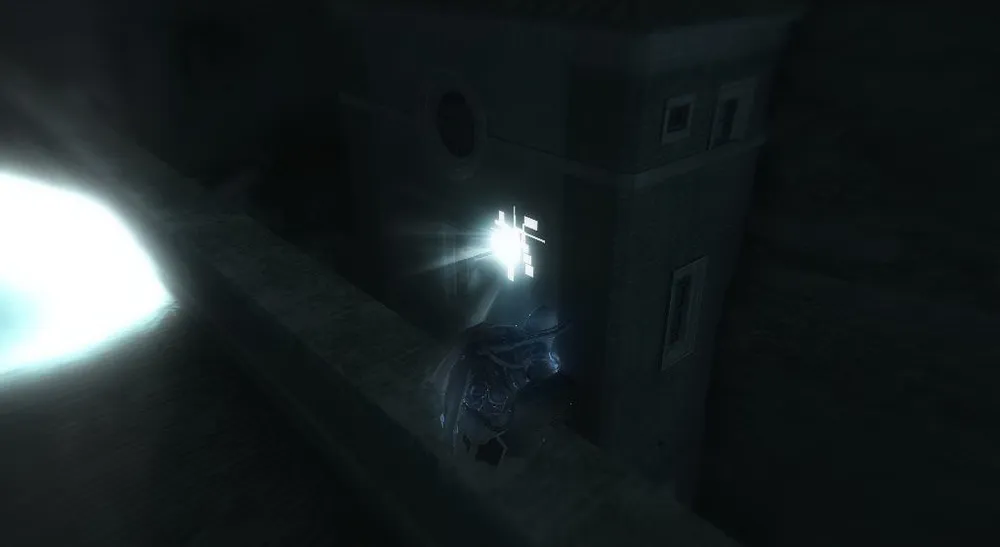 Через решетчатые ворота мы можем наблюдать, как кардинал беседует с последователями Ромула, раздавая им инструкции к дальнейшему действию. Когда разговор закончится, идите в те же ворота и догоните кардинала. Он поднимется на лифте, а вы – по ящикам вверх и прыгайте назад.