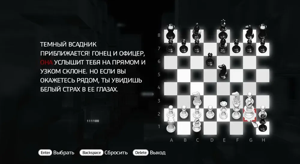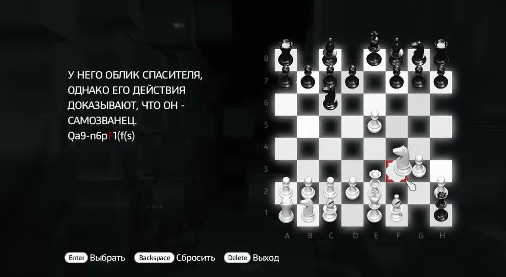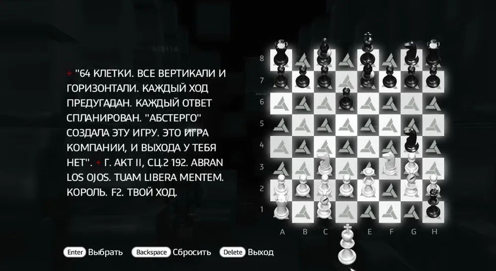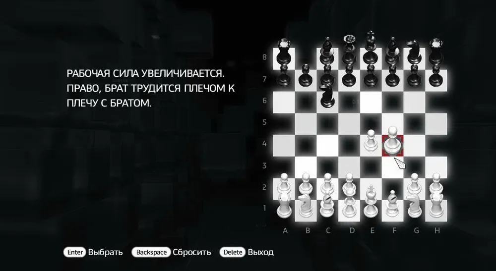 3) Шахматы: пешкой побить вражескую фигуру F4 на E5.