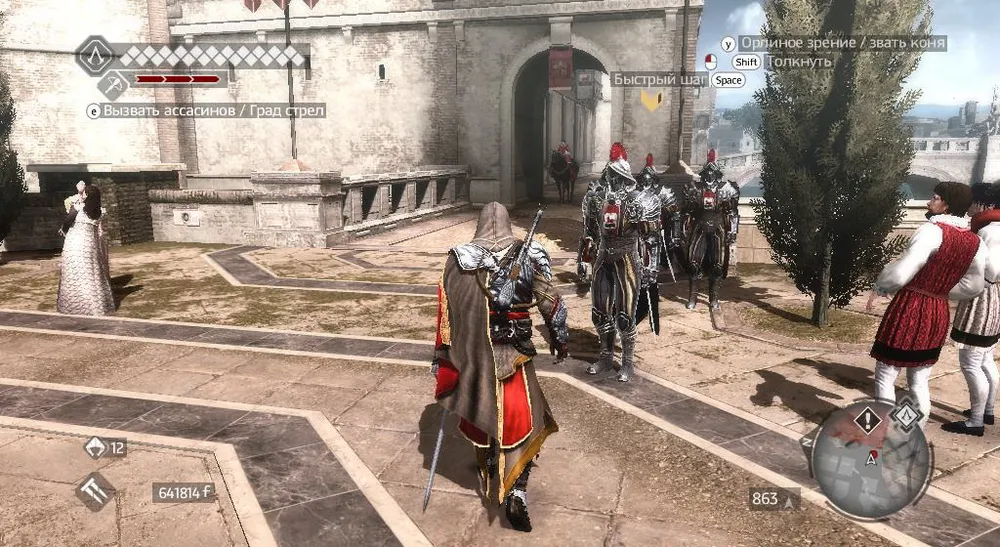 Бегите на Капитолийский холм. Чезаре поручает страже разыскать ассасинов и скоро Микелетто приведет сюда свою армию. Убейте 5 стражников, разберитесь с остальными с помощью Яблока.