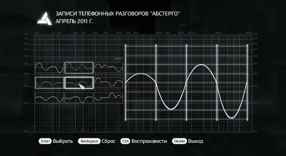 4) Радиоволны. Нужно выбрать те графики, при выборе которых совпадут с главным, чтобы расшифровать звукозапись.