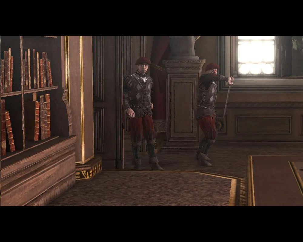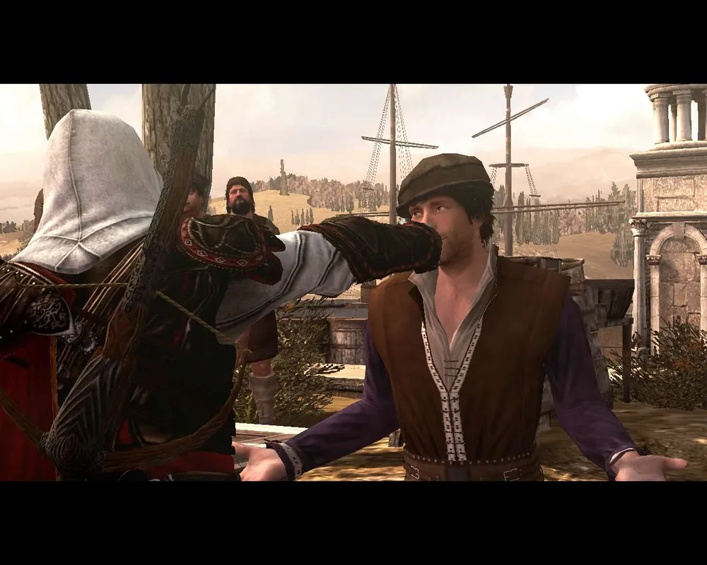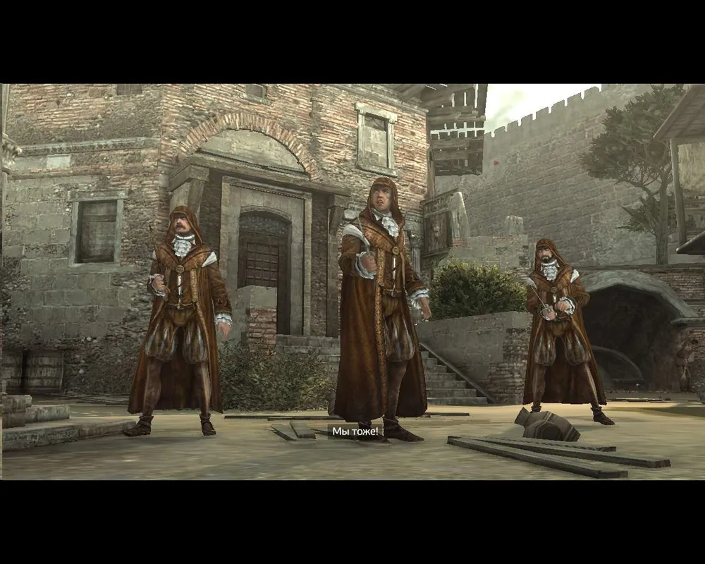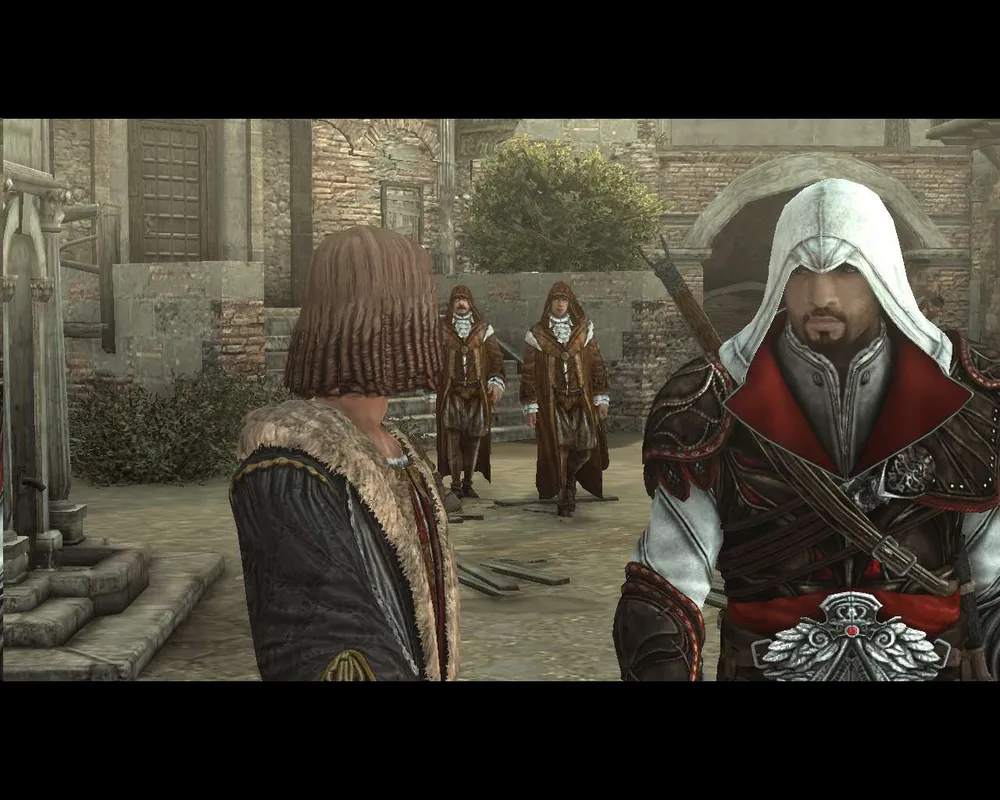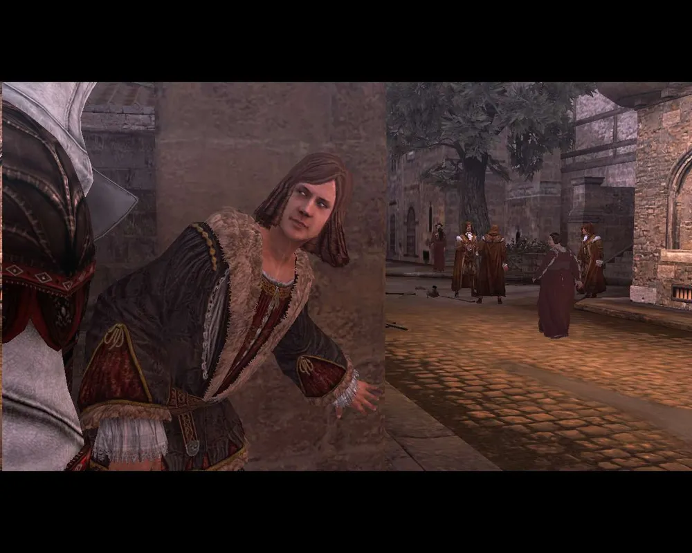 Выйдя из таверны, Эцио заметит, что трое игроков идут за ними. Он скажет об этом Салаи, который, не дослушав, обернется к игрокам-тамплиерам.