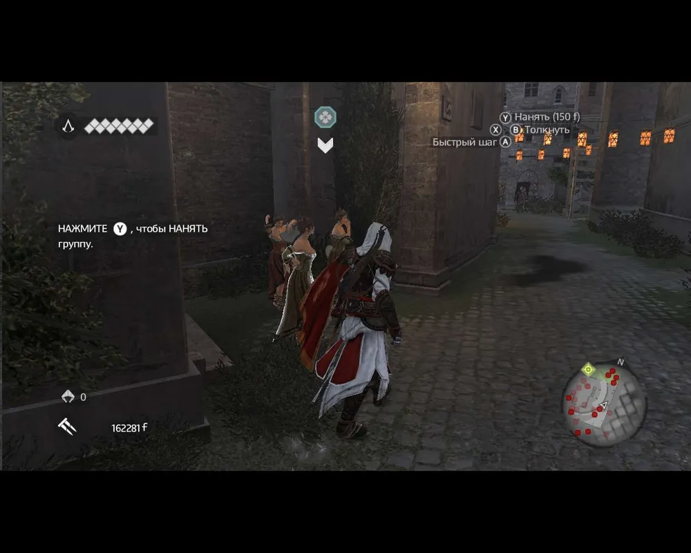 Следуйте за Патрицио, по пути на вас будет нападать стража и тамплиеры. Быстро обезвреживайте врагов скрытым клинком или вызывайте ассассинов, чтобы не отставать от Патрицио.