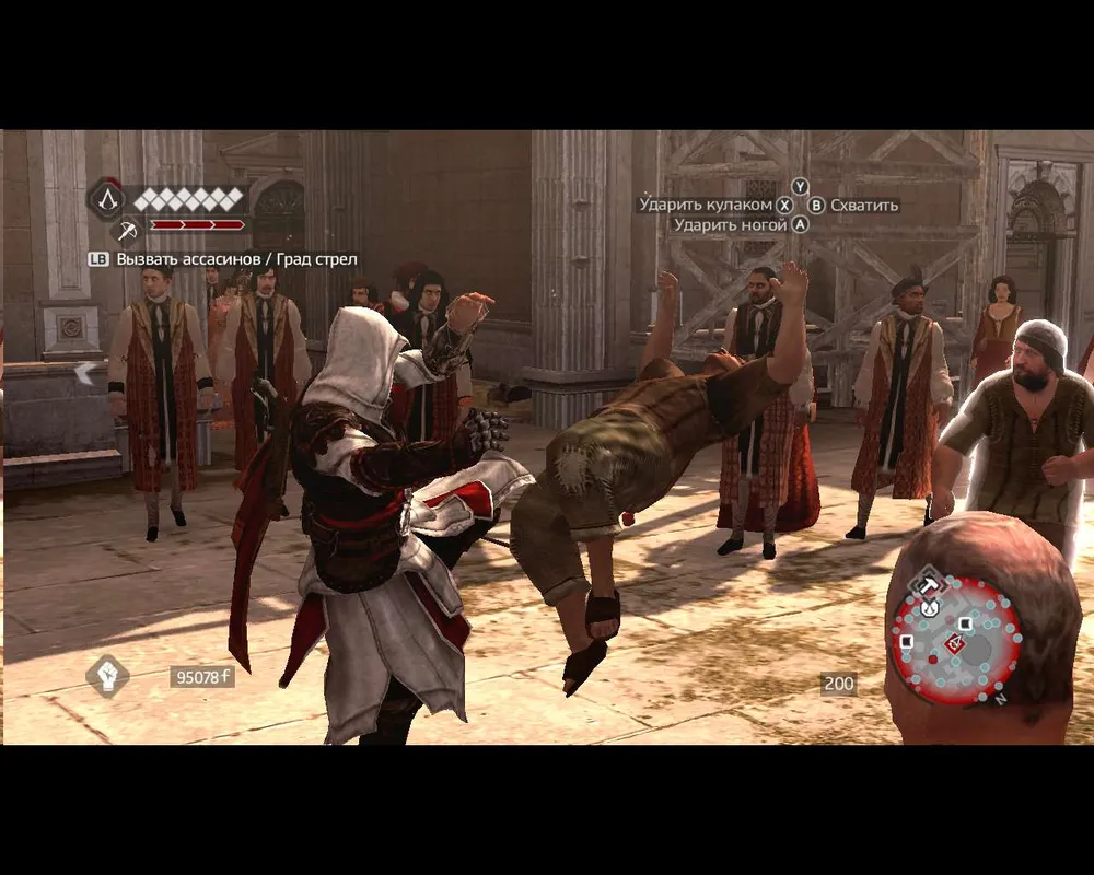 Флорентийский купец оказался одним из знакомых Эцио, с которым он не особо ладил. Купец начнет оскорблять сестру Эцио. Эцио не сможет удержаться и ударит купца по носу. Купец позовет на помощь своих друзей. Начнется драка.