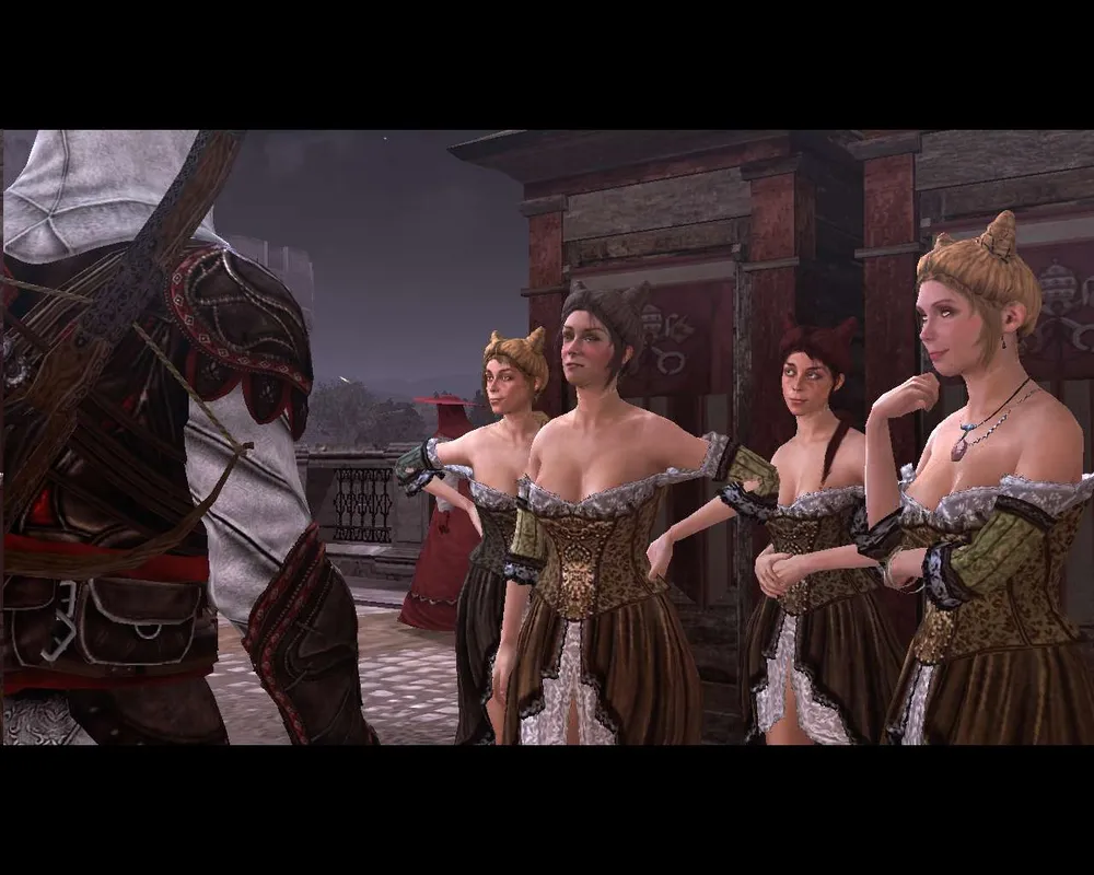 На мосту перед замком Сан-Анжело Эцио встретил группу куртизанок, которая должна помочь ему достать картины. Эцио должен будет незаметно пометить нужные ему картины, остальное сделают куртизанки. До того как пометите обе картины, вы должны соблюдать инкогнито.
