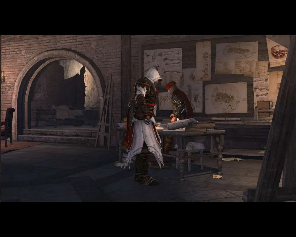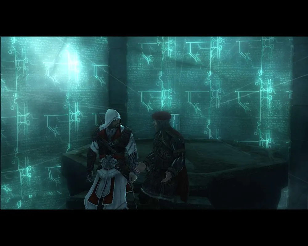 Эцио и Леонардо решили, что это место не для них, и, обсуждая другие открытия Леонардо, покинули храм.