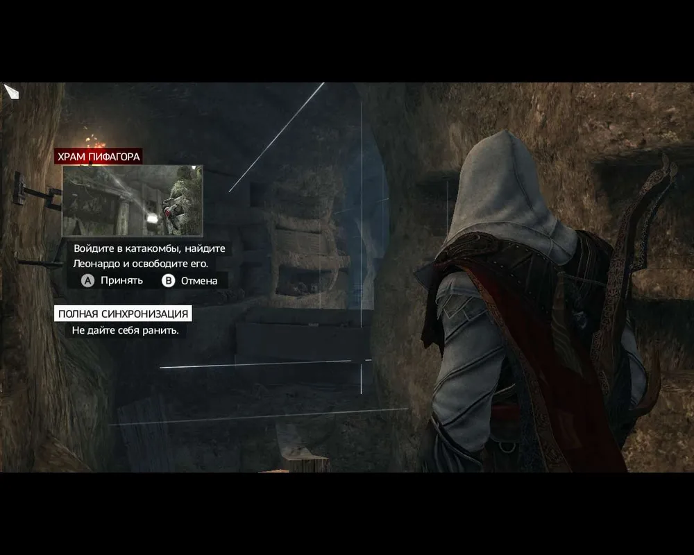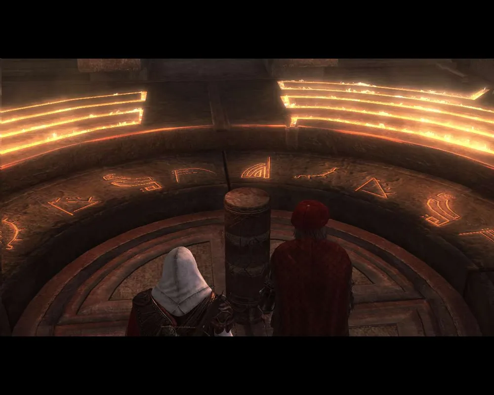 Затем Эцио развяжет Леонардо, и они пойдут в храм Пифагора, чтобы уничтожить древний артефакт, который искали тамплиеры.