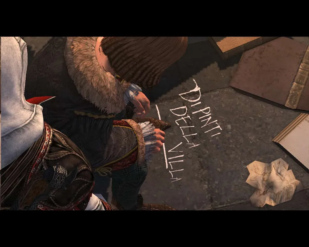 Эцио нарисует их на бумаге, и вам нужно будет составить из них карту, но помните, что несколько кусочков сгорели вместе с картинами при пожаре.