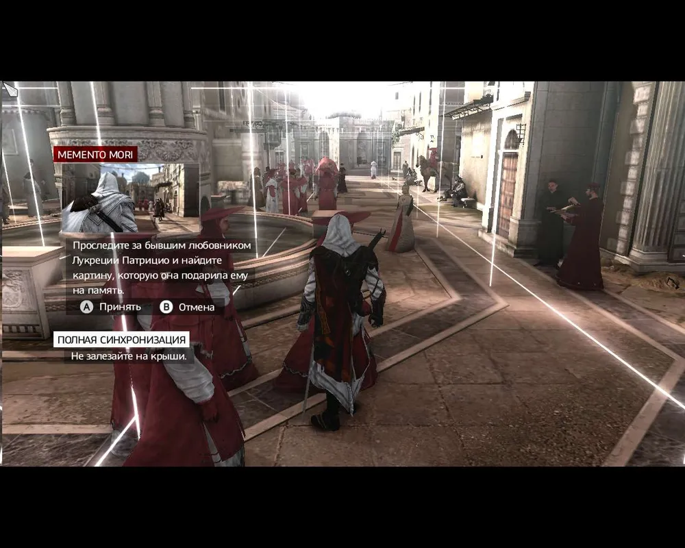 Следующая цель Эцио - любовник Лукреции, Патрицио. Патрицио собирается продать картину тамплиерам, вы должны проследить за ним и украсть картину.