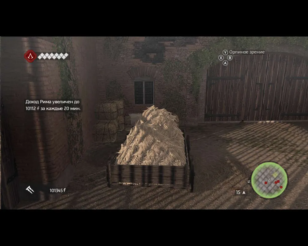Вам нужно успеть убежать из палаццо Бельригвардо за 3 минуты, так что не тратьте время зря. После побега Эцио заберёт картину из повозки.