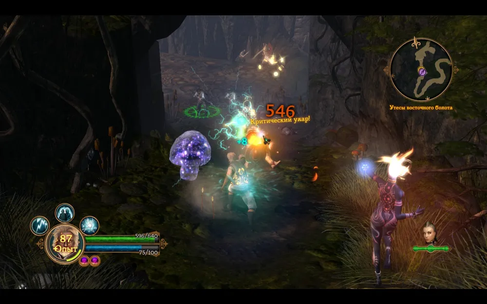 Истребляем ее "внутреннее биосодержимое". В нижней части пещеры берем в группу Лукаса (если вы с одним спутником). Преодолеваем баррикаду и оказываемся на Поле Битвы в Болотах. Обещаем помочь лорду Девонси, договариваемся о встречи с ним и частью его армии возле деревни Первого народа. Возле двух пушек Джейн Кассиндер на возвышенности есть скрытый проход к тайнику: там стоят два сундука и бочка. Родерику обещаем помочь в поиске пропавших солдат, идем по тропе за его спиной в Болото Сумеречного Леса. Спасаем первый отряд разведчиков. Исследуем с генералом Поселение Первого Народа на предмет пленников. При помощи "вентиля" выдвигаем мост. Нам предстоит диалог с вождем племени Мару-Ятум, после которого придется уложить кучку его "людей".