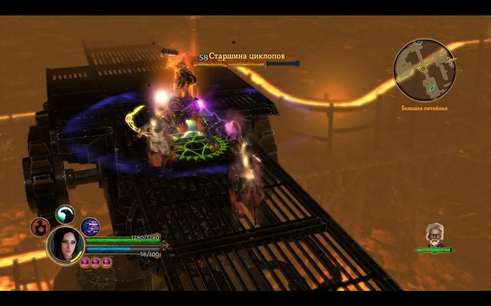 По пути освобождаем заложников (Ольберта Лутца, кузнеца и начальника смены). Вождь циклопов Эргометей после взбучки вступает с вами в диалог и предлагает переговоры.