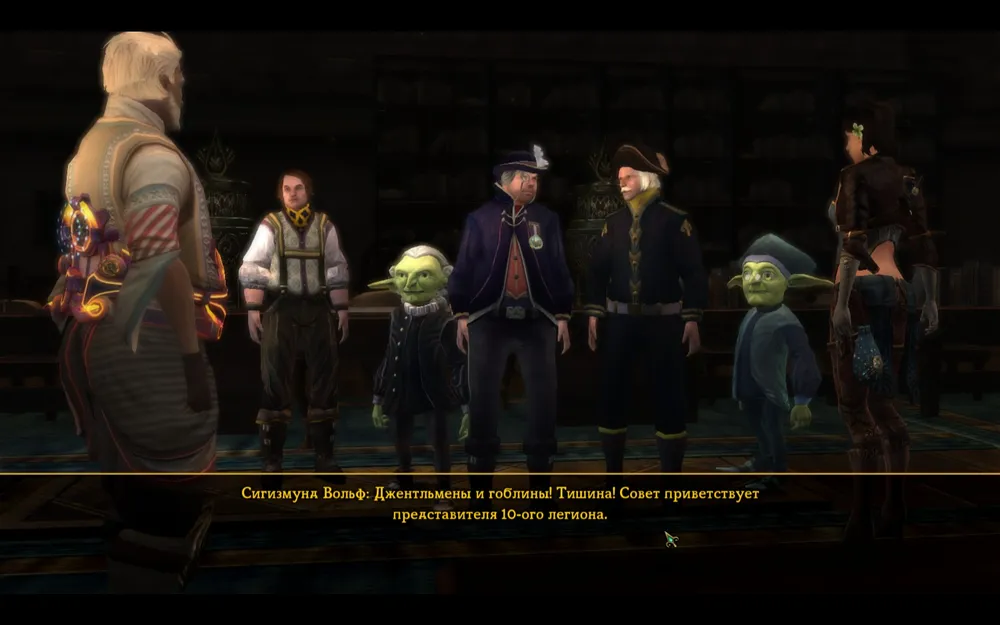 Идем в Зал Мастеров. Гизелла с толпой протестующих требуют освободить крага. Сигизмунд Вольф поведает вам интересную историю и согласится помочь в получении поддержки мастеров. Идем на совет.