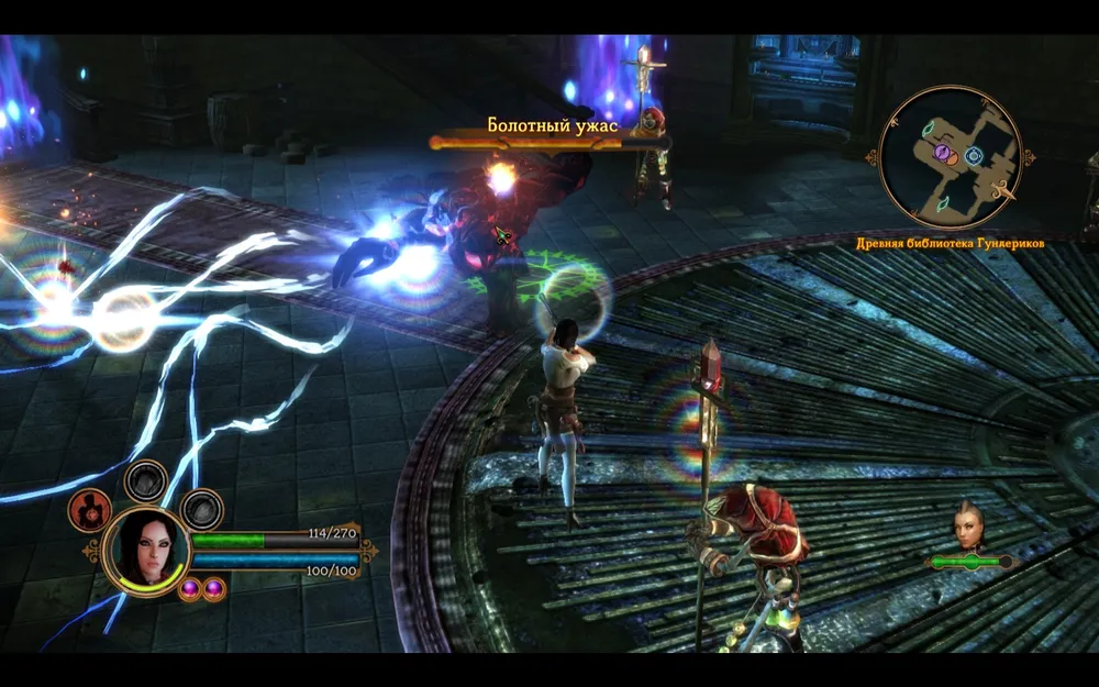 Исследуем кабинет за дверью. Проходим дальше, обследуем скрытую комнату за стеллажами. Идем обратно и входим в восточное крыло. Нечисти здесь навалом! Пробиваемся вглубь, к Древней Библиотеке Гундериков.