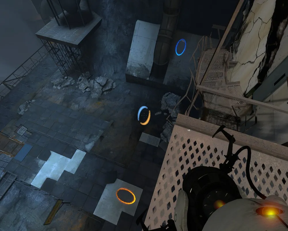 Теперь порталами поднимаемся наверх. Тут нужно каждый раз набирать высоту и иногда успевать ставить порталы. Мы уже на финишной прямой.