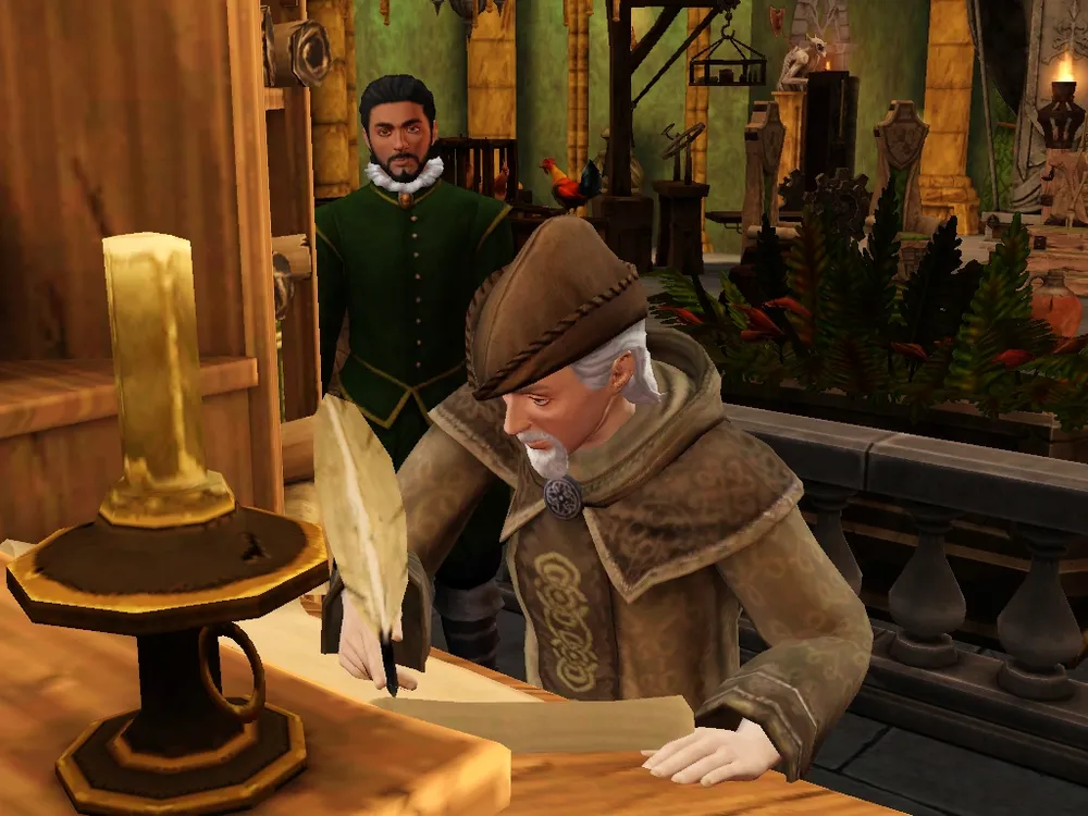 - Ай! Не толкайтесь, молодой человек, если не хотите, чтобы я заточил ваше сознание в камень на тысячу лет, да. Можете поспрашивать народ, куда же делся тот разбойник, угу. А теперь отойдите, ага, я отправлю свою головную боль, мхмх, королю Грабвилля, например. Если будете стоять рядом, то может попасть в кого-нибудь из вас, вот так вот. Zhrgt D’zahak! Вот и всё, сверхскоростная межконтинентальная посылка отправлена, угу. Как новый, а Вашему Величеству стоило найти меня пораньше, не так уж много тут мест, где можно спрятаться, даа. Прошу прощения за наглость, угу.