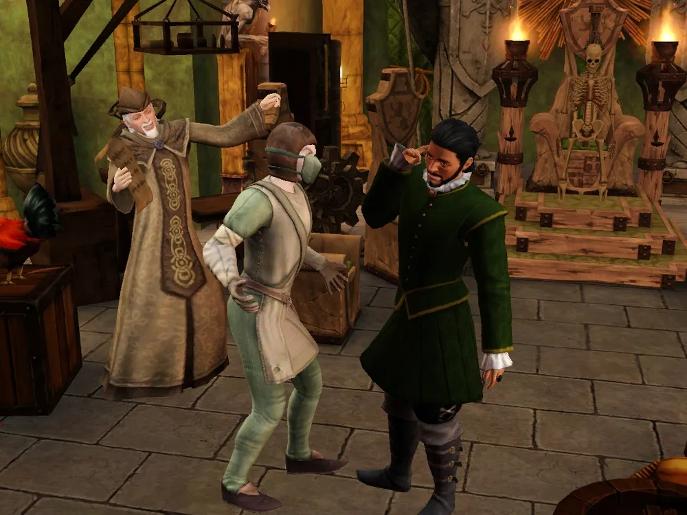 - Даа, вы ещё вчера сказали что шут понимает вас лучше всех, словно настоящий младший брат, вот так. Я вас действительно не видел таким радостным с тех самых пор, как вы были ребёнком, угу. Кстати, верните вы уже этот выставочный скелет, мы ведь его тащили от самой моей башни. Но идея посадить его на трон, чтобы напугать всех с утра, признаю, была очень неплоха, да. Шут придумал?