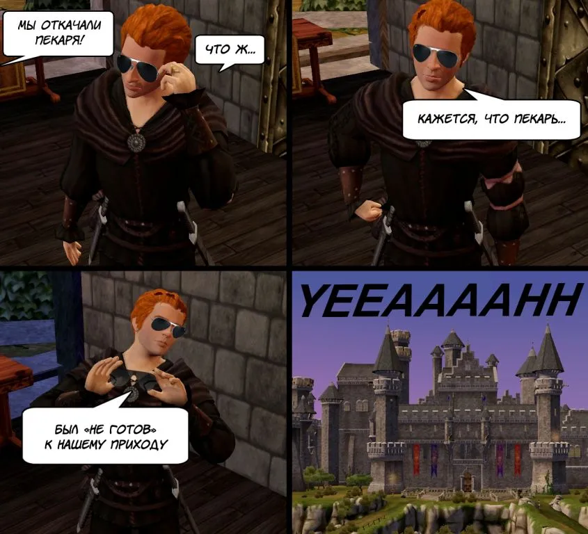 - СГИНЬ! Шпион, может, натравить на него эту «Орианну» напоследок? (доктор крикнул, уже стоя в дверях«не получится, там блокировка подобных приказов, ахахахах!», после чего быстрым шагом начал удаляться от замка. Орианна, словно заводная, следовала за ним) Ах ты ж чёрт! Так, так, так. Пекарь неспособен говорить, лекарь ушёл раньше. Мага ко мне, срочно! Он последний оставшийся человек из тех, кто может пролить свет на вчерашнюю ночь. Тем более, что пьёт Освальд мало и редко.