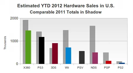 Ожидаемые продажи консолей в США в 2012 году по сравнению с продажами 2011-го (с сайта Gamasutra.com)
