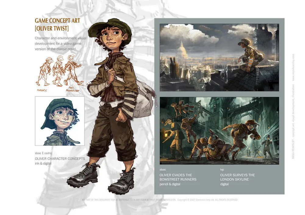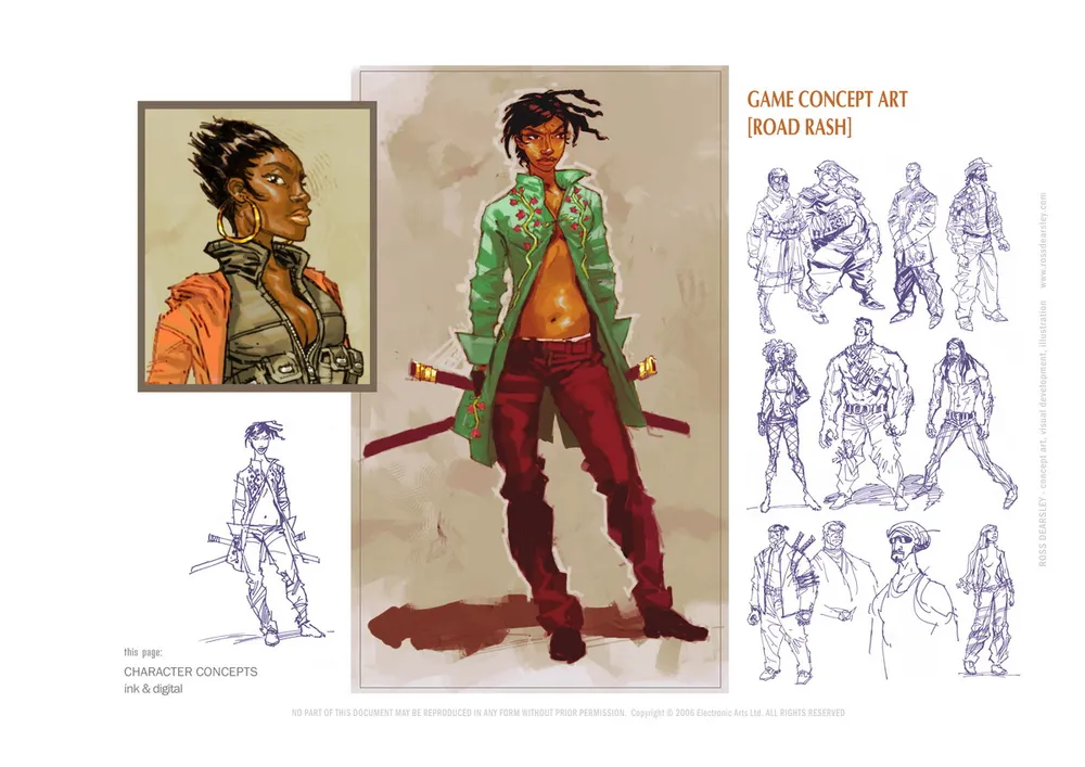 Сегодня сайт PlayStation University наткнулись на удивительную галерею Росса Дирсли, в котором можно увидеть целую кучу артов к неанонсированным проектам EA. Среди артов нашлись такие проекты, как Road Rash и Oliver Twist. Смотрим: