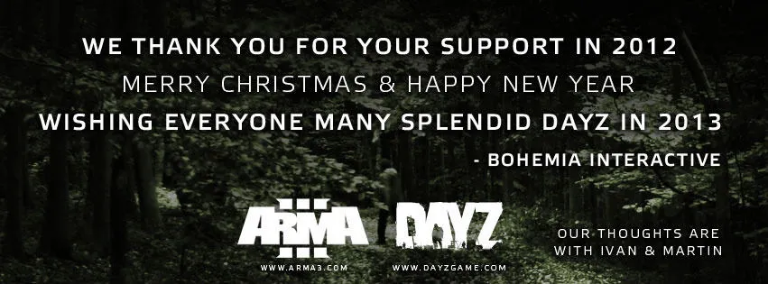Сегодня Bohemia Interactive поздравила своих читателей небольшой новогодней открыткой: