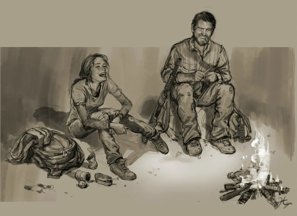 Вчера так же появилось несколько конецпт-артов The Last of Us. Скетч смеющихся Джоела и Элли у костра, эта картинка особенно захватывает – не часто увидишь подобную картинку в сеттинге зомби. Да и вообще среди всех концептов для игр.