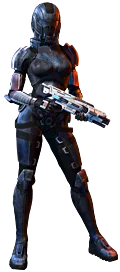 Всеми любимая синекожая раса в мультиплеере представлена азари-юстицарами, не знающими пощады в бою. Имеет необычный стрейф - с помощью биотики (расходует небольшое количество энергии барьера) "телепортируется" на небольшое расстояние. Силовая атака также необычна и является ослабленным вариантом умения Штурмовика, Новы, наносящей урон по площади вокруг игрока, расходует немного энергии барьера.