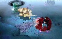 Сетевая игра начинается не с привычного центрального здания и группы рабочих вокруг, а вовсе даже с одинокого героя, сиротливо стоящего посреди тумана войны. Карты населена множеством нейтральных монстров, на которых можно охотиться и за счет этого расти в уровнях, чтоб потом добраться до вожделенной базы врага и сровнять ее с поверхностью планеты. Строить он ничего не может, добывать ресурсы, соответственно, — тоже. Разве что из поверженных врагов исправно сыплются золотые монеты, за которые можно приобрести отряд наемников, полезный предмет, новое заклинание или кучу бутылочек с полезными свойствами.