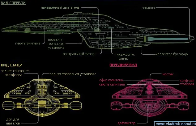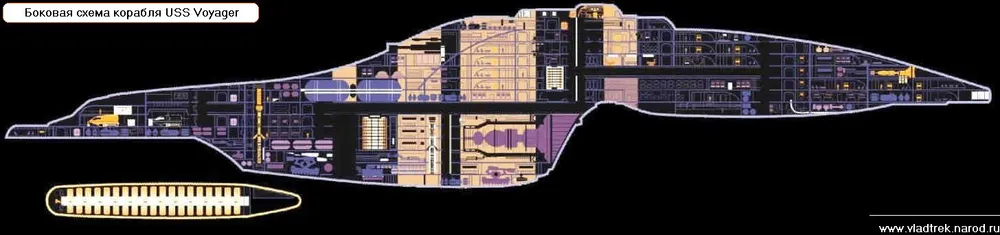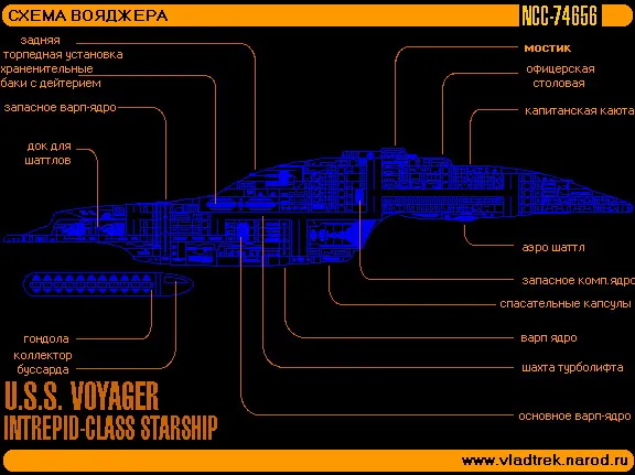 Один из самых быстрых и мощных кораблей ЗФ Созданный для исследований и разведки, Вояджер имеет, тем не менее, внушительные системы вооружения. U.S.S. Voyager - второй из всего четырех кораблей. построенным к дате его запуска в 2371 году, ЗД 48038.5. Вояджер имеет варп - систему с изменяемой геометрией гондол искривления, позволяя перейти в варп 5 не вредя пространственному континуму. Его EPS - системы и системы предохранения были сильно модифицированы, чтобы соответствовать Энаранской технологии сохранения энергии; энергетические реле на некоторых палубах теперь включают технологию Борга.