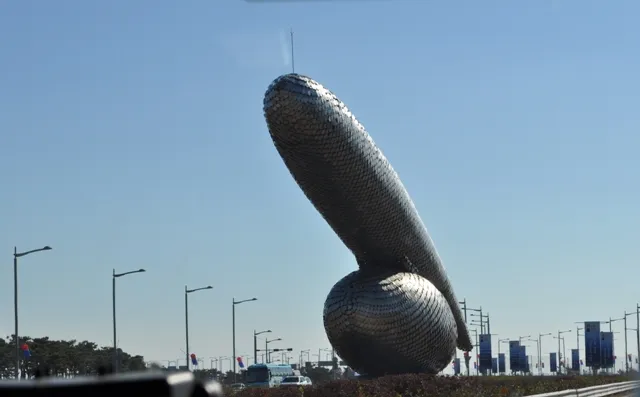 Прямо на выезде из Сеульского международного аэропорта нас встретило вот такое вот произведение искусства! Не знаю, что автор сооружения хотел этим сказать. =)